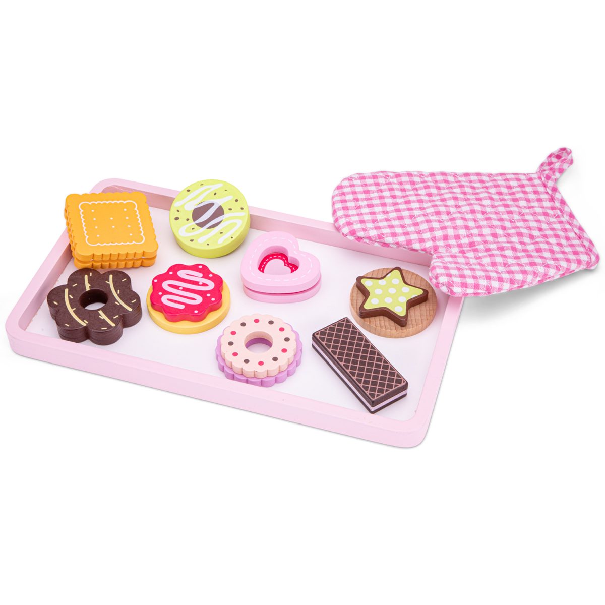 De set bestaat uit acht verschillende soorten koekjes, elk beschilderd met vrolijke kleuren en gedetailleerde patronen. De koekjes worden gepresenteerd op een stevige houten “bakplaat”, klaar om ‘gebakken’ en geserveerd te worden. De meegeleverde ovenwant maakt het spel nog realistischer en helpt bij het ontwikkelen van fijne motoriek en rollenspelvaardigheden. Deze houten koekjes set is de perfecte manier om elk speelmoment om te toveren tot een klein feestje.