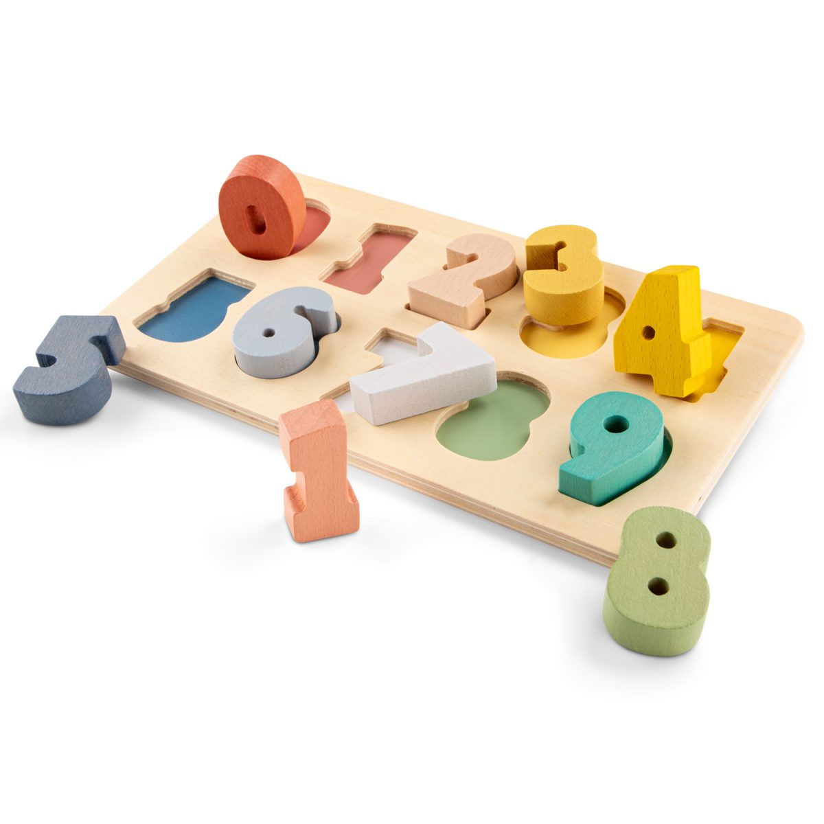 Spelenderwijs leren tellen! Met de Woet® houten cijferpuzzel ontdekken kinderen de wereld van getallen op een vrolijke en creatieve manier. De puzzel bestaat uit de cijfers 0 t/m 9 in zachte pastelkleuren die perfect passen in kleine kinderhandjes. Kinderen kunnen de cijfers in de juiste vorm leggen, sorteren of gebruiken om hun eerste sommetjes te maken.