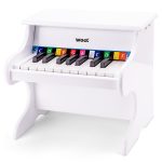De piano wordt geleverd met een kleurgecodeerd muziekboekje met vijf eenvoudige liedjes en een toonladderkaart die boven de toetsen geplaatst kan worden. Zo leren kinderen spelenderwijs hun eerste melodieën, terwijl ze hun ritmegevoel, fijne motoriek en zelfvertrouwen ontwikkelen. Dankzij het tijdloze ontwerp staat deze piano bovendien prachtig in elke speel- of kinderkamer.