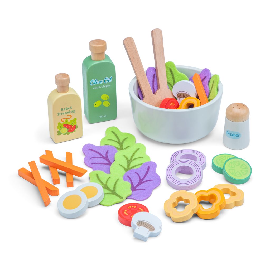 Kinderen vinden het heerlijk om mama of papa na te doen in de keuken. Deze speelset nodigt uit tot rollenspel, samenwerken en fantasie. Terwijl ze druk bezig zijn met het snijden van groente oefenen ze ongemerkt hun motoriek, oog-handcoördinatie en concentratie.