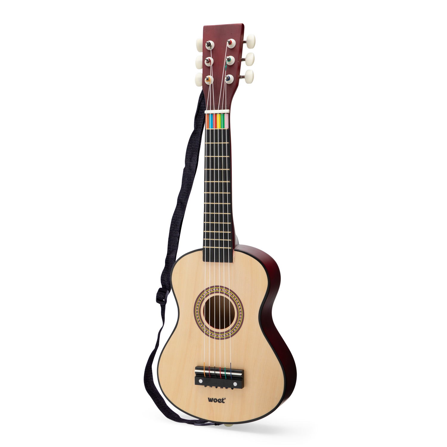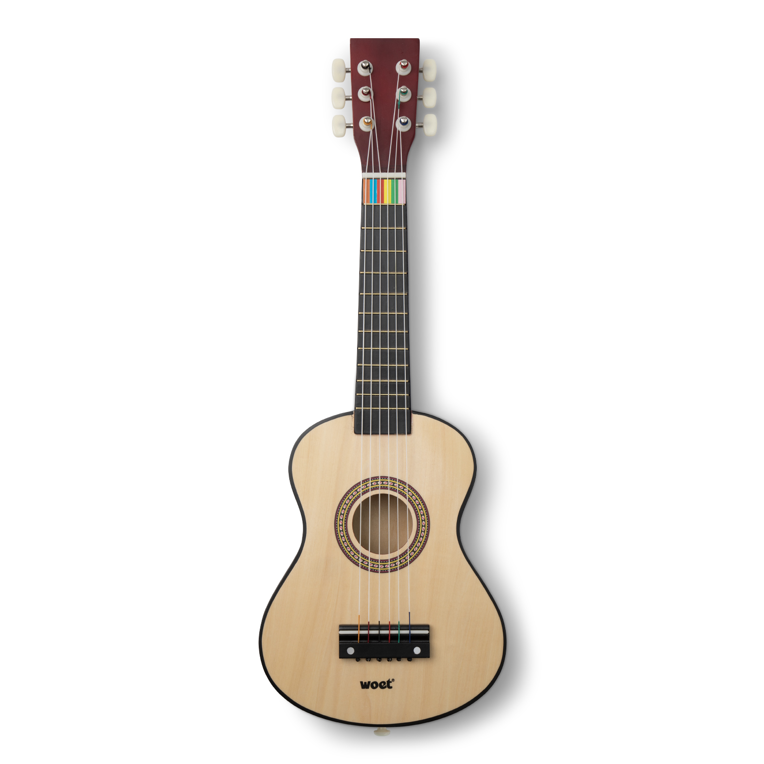 Met deze klassieke houten gitaar van Woet® beleven kinderen eindeloos plezier met muziek maken. Een prachtig cadeau en een inspirerend speelgoedinstrument dat jonge muzikanten helpt hun eerste stappen in muziek te zetten.